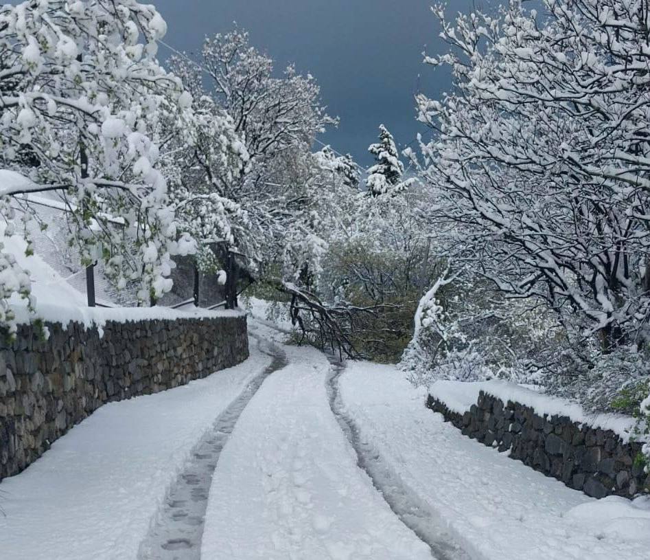 На фото и видео, которые уже появились в сети видно, что снега нападало в Крыму очень много, особенно учитывая весну. Кое-где дороги заметны так, что проехать невозможно, а из-за гололеда некоторые авто даже заносит.