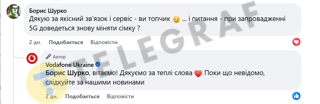 Вопрос об этом украинец задал мобильному оператору Vodafone на его странице в Facebook. "При введении 5G придется снова менять симку?", — спросил абонент.
