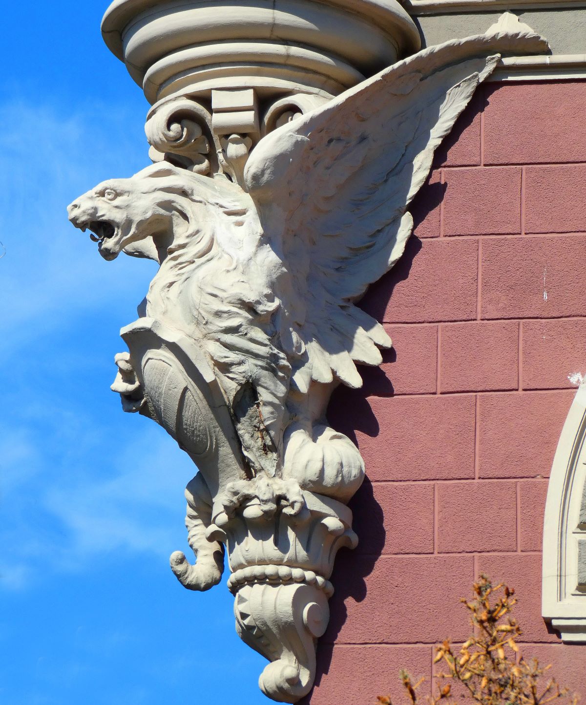 Фасад здания поражает изысканным сплетением элементов североитальянской готики и флорентийского Возрождения. Мраморные колонны, утончённая орнаментальная вязь, выразительные маскароны в форме львиных голов и величественные скульптуры грифонов – мифических крылатых стражей сокровищ – создают неповторимый облик сооружения. Центральный портал с изящной колоннадой и балконом придаёт зданию особую торжественность и монументальность.