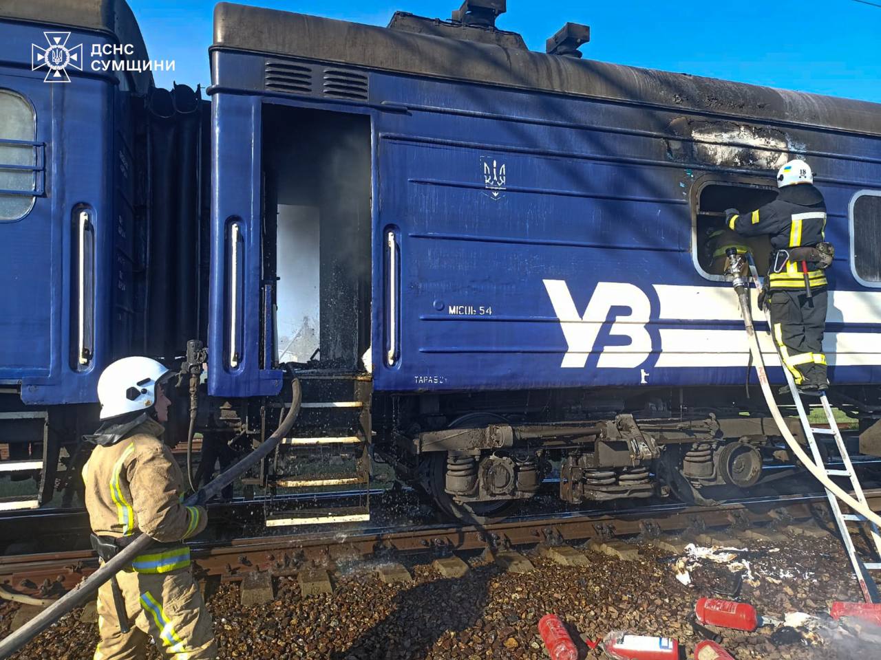 UPD: В Государственной службе чрезвычайных ситуаций (ГСЧС) показали последствия пожара в поезде УЗ. Отмечается, что инцидент произошел в городе Бурынь.