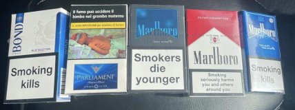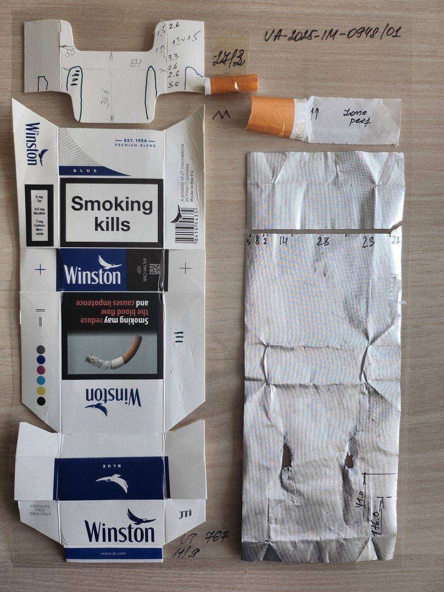 Как сообщил журналист Евгений Плинский, особенностью новых подделок является упаковка с предупредительными надписями на итальянском языке и ранее не встречавшиеся в Украине сигареты под марками, в частности Parliament и Winston Blue.