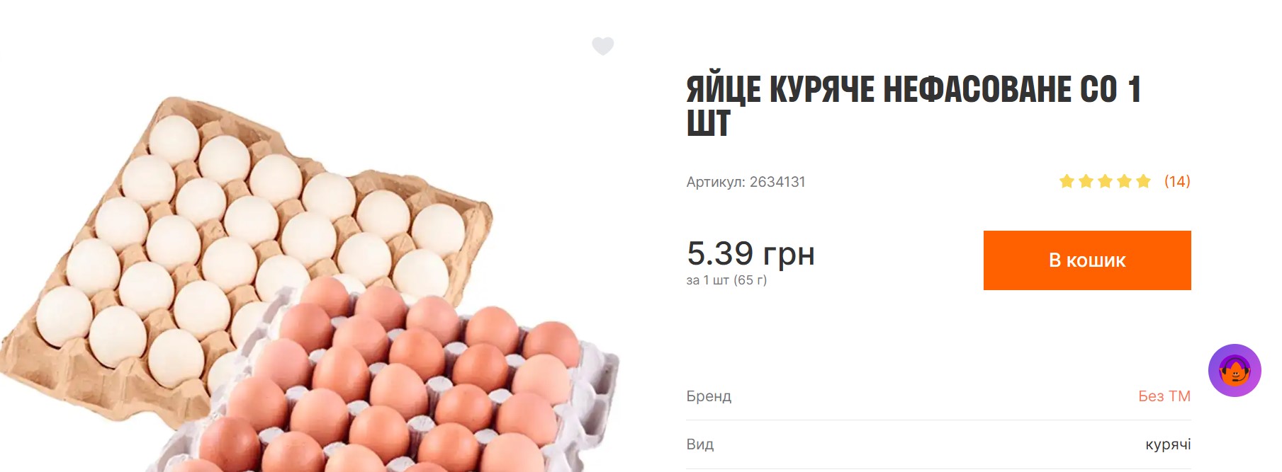 Стоимость куриных нефасованных яиц в сети супермаркетов "Варус" составила 5,39 гривен за штуку. За десяток яиц покупателям придется выложить 53,90 грн.