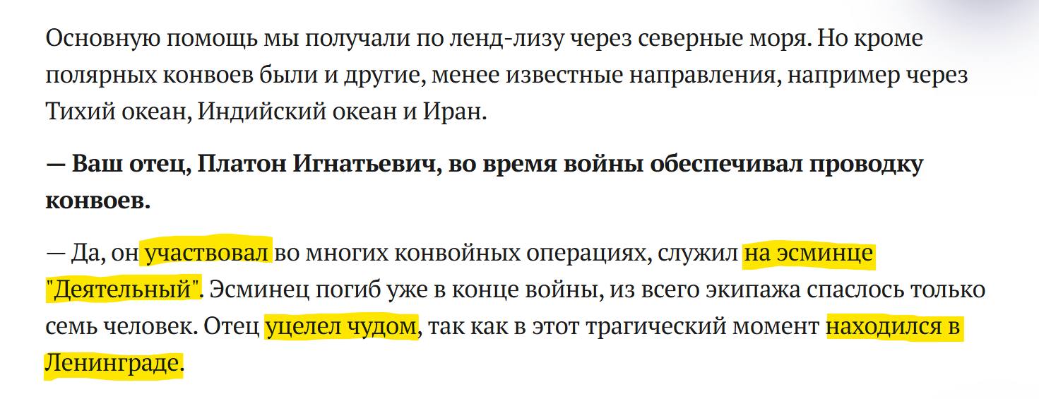 Об этом Золотухин дописал в Facebook, прокомментировав недавнее интервью Николая Патрушева российскому агентству ТАСС. Он напомнил, что отец Патрушева, Платон, во время Второй мировой войны служил политруком на эсминце "Деятельный", который 16 января 1945 года был торпедирован и затонул.
