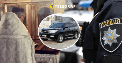 В Киеве на видео сняли необычный инцидент. Священник, полицейский и мужчина в черном, которого в комментариях почему-то назвали "барыгой", вместе толкали внедорожник Toyota Land Cruiser.