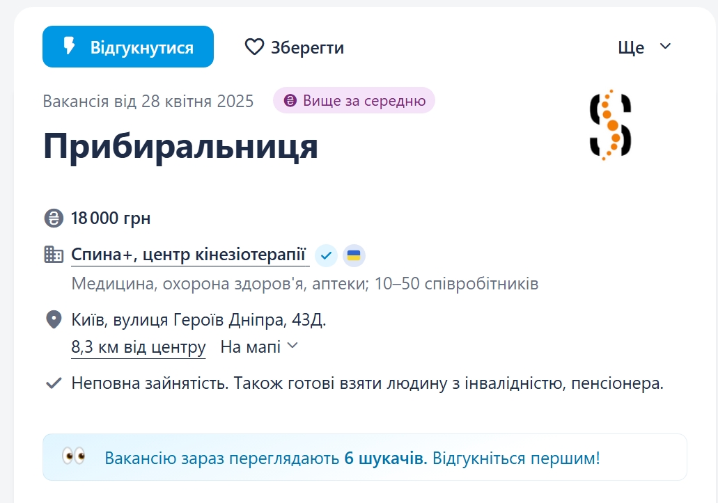 Работодатель обещает зарплату в 18 тысяч гривен. В день 6 рабочих часов — с 9:00 до 15:00 или 14:00 до 21:00. Однако работать придется с понедельника по субботу.