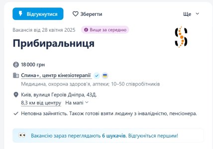 В Киеве ищут уборщицу в медицинском центре на Оболони. Предлагается неполная занятость по гибкому графику работы и конкурентной заработной плате.