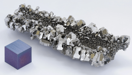 12. Диспрозий — редкоземельный металл, который относится к латаноидам. Почти 90% добываемого в мире металла идет на изготовление постоянных магнитов. С его помощью также производят материал Terfenol-D, который имеет сильные магнитострикционные свойства. Металл используют еще в измерительных преобразователях, механических резонаторах, высокоточных инжекторах.