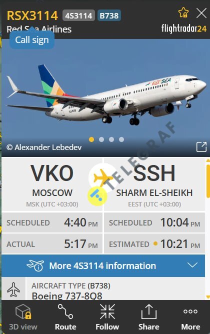 Речь идет о борте Boeing 737-8Q8, который принадлежит египетской частной авиакомпании Red Sea Airlines. 9 мая он выполнял рейс из Москвы в Шарм-эль-Шейх, однако якобы резко изменил курс и залетел в Украину, нарушив воздушное пространство в районе города Дрогобыч (Львовская область). После этого летательный аппарат продолжил свой маршрут, покинув воздушное пространство Украины.