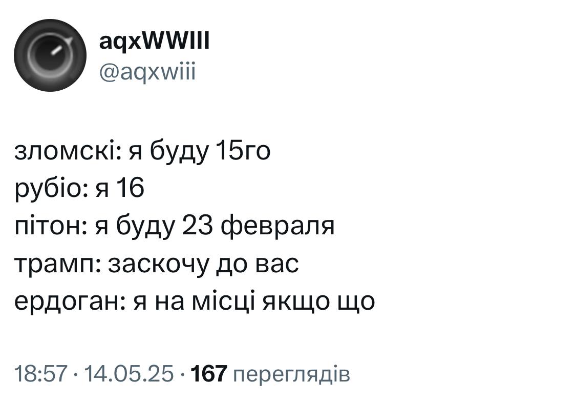 Были и другие шутки в преддверии переговоров в Стамбуле. Мемы создавали из известных кинолент, придумывали, кто и когда прибудет.