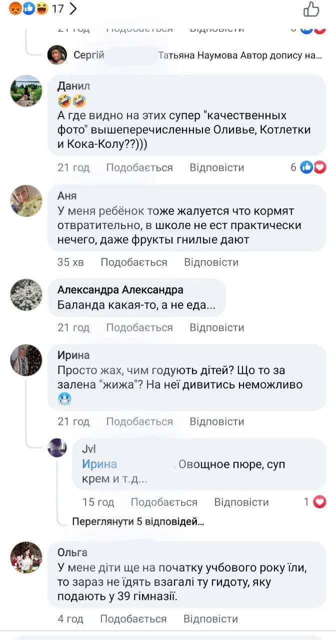 В комментариях к публикации некоторые днепряне предполагают, что непонятная масса на тарелке может быть крем-супом, но даже при таком условии вид блюда слишком непривлекателен и не поощряет детей к употреблению. Питание в начале учебного года было значительно лучше, но сейчас дети просто отказываются от таких обедов, пишут под сообщением.