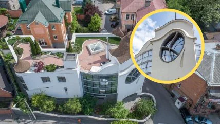 Фасад этой трехэтажной виллы имеет плавные изгибы, похожие на волны, окно в центре, словно разлитое по стене, волнистые линии. Это напоминает стиль Гауди, поэтому здание часто называют "Вилла Барселона". Ее автор – украинский архитектор Михаил Хохлов.