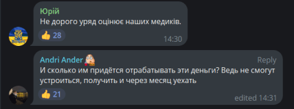 Однако в обществе инициатива вызвала волну обсуждений. Главные вопросы — безопасность, жилье, реалии на местах и продолжительность обязательств. В комментариях люди прямо выразили сомнения в реальном содержании предложения: мол, государство "оценивает жизнь медика в 200 тысяч гривен", а само предложение — это "намек идти умирать".