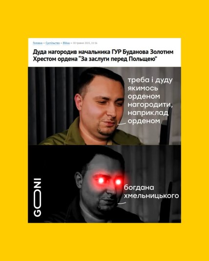 После того как президент Польши Анджей Дуда отметил начальника Главного управления разведки Украины Кирилла Буданова одним из самых высоких орденов — золотым офицерским крестом ордена "За заслуги перед Польшей" — украинцы не остались равнодушными. Событие сразу получило огласку, а в соцсетях появился иронический мем, который мгновенно стал вирусным.