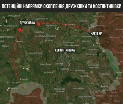 "Нарастив усилия на выступлении между Покровском и Константиновкой, россияне могут пойти на Торское, западнее Дружковки, а с другой стороны – пойти на Дружковку из Часового Яра. И вот этот весь кусок может быть большой проблемой, если россиян не остановить. Зачем им лезть в Константиновку? Так под угрозой будет и Дружковка, и все наши пути снабжения", – отмечает проинформированный собеседник УП.