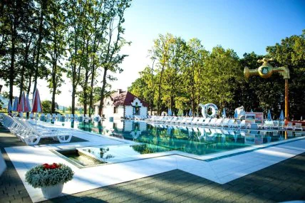 Современный оздоровительный центр с закрытым термальным бассейном, джакузи, водопадами и гейзерами. Также работает летний комплекс с открытыми бассейнами, в том числе детским. Вода в бассейнах поступает прямо из скважин глубиной 1200 метров и не проходит никакой технической или химической обработки именно поэтому сохраняет природные целебные свойства. Горячие источники комплекса питаются магматическими породами в вулканическом регионе Береговщины, а температура воды здесь держится на уровне 25–40°C.