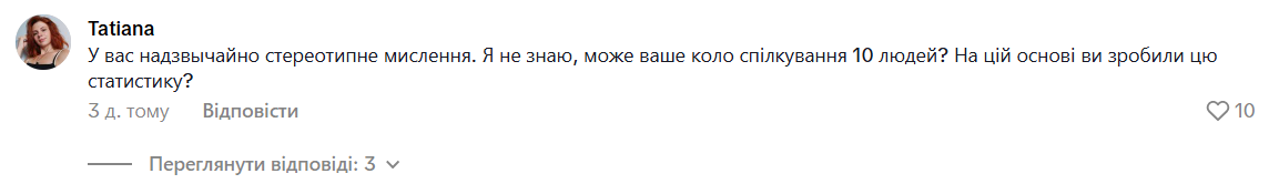 Однако звучали и противоположные мнения. Одна пользователь заметила, что в таких выводах слишком много стереотипов, ведь жизнь шире, чем опыт общения с ограниченным кругом людей.