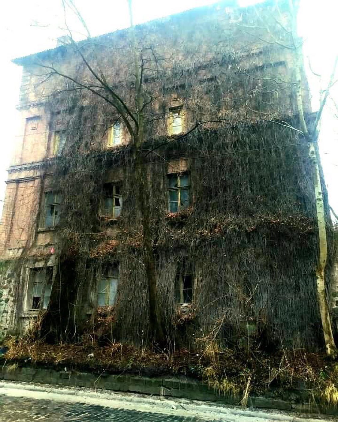 Загадочный дом, впечатляющий своеобразной жуткой красотой, расположен почти в центре Тернополя, по улице Воинов Дивизии "Галичина", 26. Трехэтажное здание не только имеет необычную форму — узкое и длинное, но и поросло плющом.