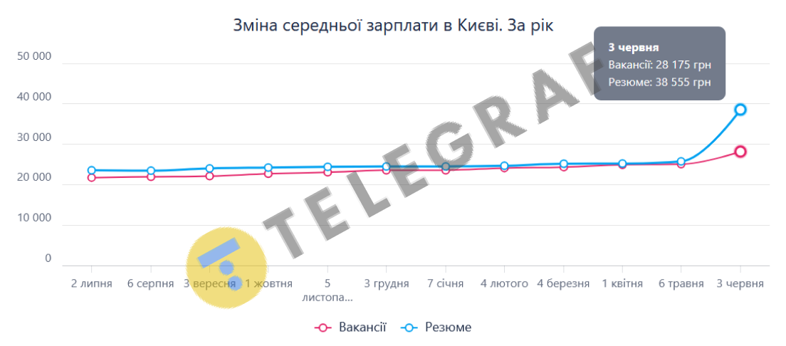 Зарплаты в столице часто выше, однако их "съедают" более дорогое жилье и быт. По данным портала Work.ua, средняя заработная плата в Киеве в июне 2025 года (по вакансиям) составляет 28 175 грн, тогда как за резюме — 38 555 грн.