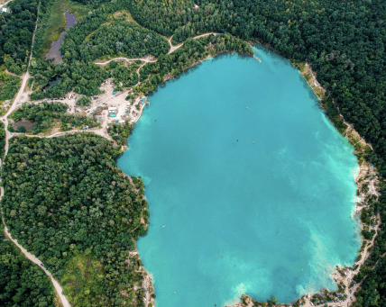 Озеро на территории карьера образовалось в 1990-е годы. После приостановки его разработки территорию затопили подземные источники.