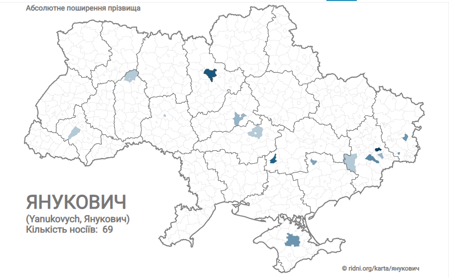 В списке президентских фамилий Янукович — самая редкая в Украине