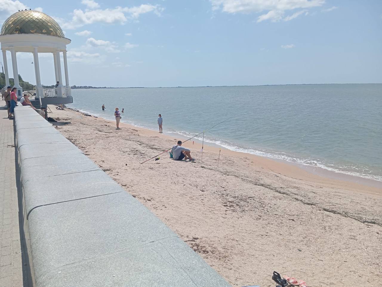 "Пока война не закончится, так примерно и будет", — комментирует свое видео мужчина. На популярных ранее пляжах вместо отдыхающих теперь можно увидеть только рыбаков с удочками.