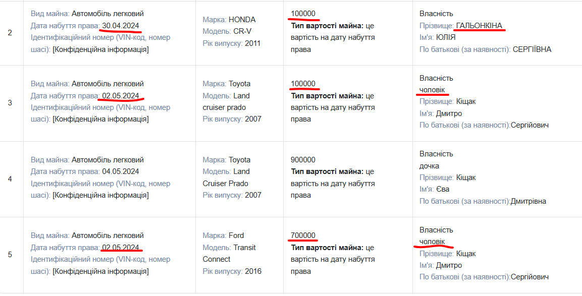 Примечательно, что в декларации Галенкиной за 2023 год есть только один автомобиль. Остальные машины появились у семьи именно в 2024 году.