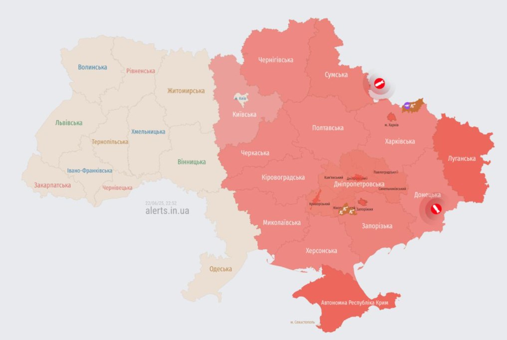Большинство регионов востока, юга и центра находятся в зоне воздушной тревоги.
