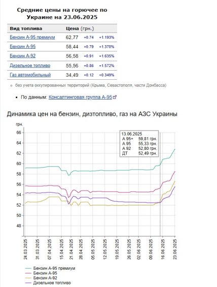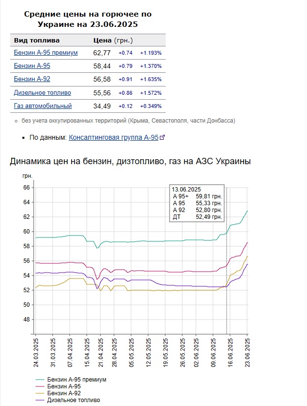 Тут стоит отметить, что действительно, по данным сайта "Минфин", в среднем стоимость бензина в Украине с 13 июня выросла примерно на 2 гривны.