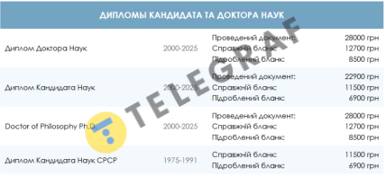 На продажу выставляют дипломы бакалавра, магистра, кандидата и даже доктора наук. Например, "пакет" с дипломом кандидата наук с регистрацией в базе данных предлагают от 22 900 до 28 000 грн. В то же время магистра или специалиста обещают сделать за 15 000 грн в зависимости от года выпуска и вуза.