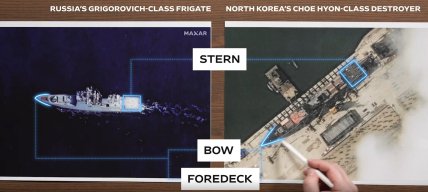 Эсминец Кима также выдает скула (линия пересечения борта с корпусом) – она абсолютно одинаковая у российского и корейского кораблей, отмечает Планкетт.