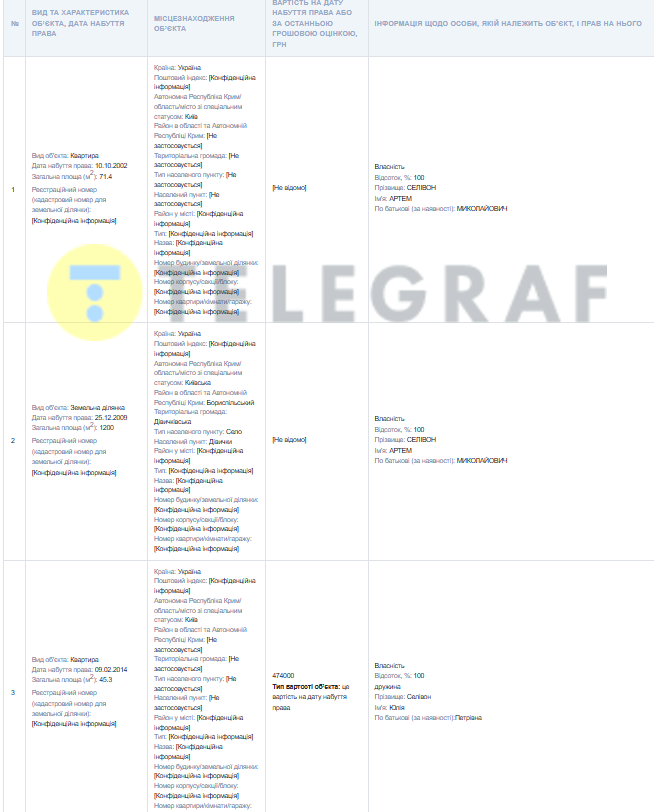 За прошлый год Артем Селивон заработал 1 543 016 гривен. А его супруга — 1 695 646 гривен. Ее пенсия составила 35 320 гривен.