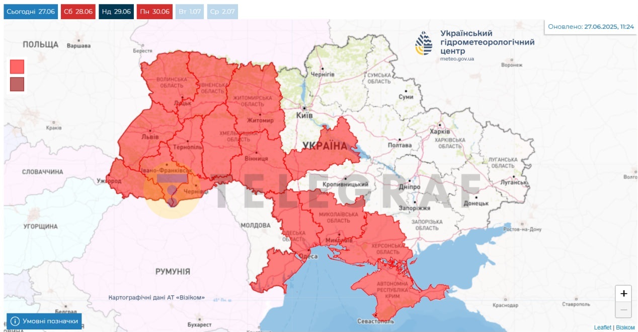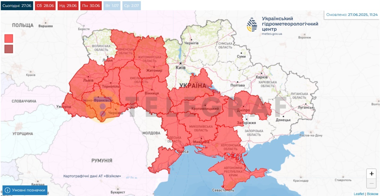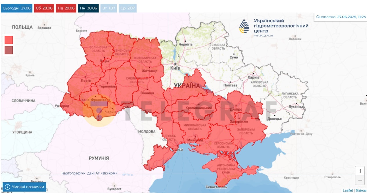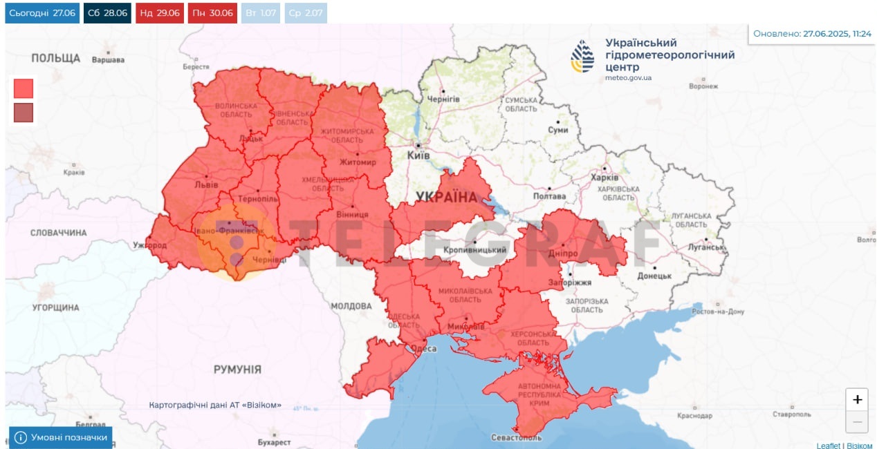 Синоптики предупреждают украинцев об опасной погоде уже в эти дни — с 27 по 30 июня включительно. По их прогнозам, на большей территории страны будет держаться чрезвычайная пожарная опасность.