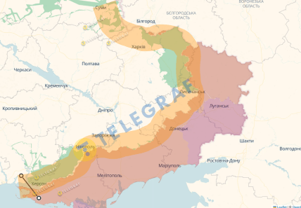 Далее дальность зависит от скорости, которую развил самолет, и высоты сброса боеприпаса. Для дальности 80 км под угрозой Николаев, Херсон, Запорожье, Харьков и населенные пункты этих, а также Донецкой, Луганской, Сумской и всех граничащих с Россией областей. Для наглядности взяли за основу карту боевых действий deepstate.