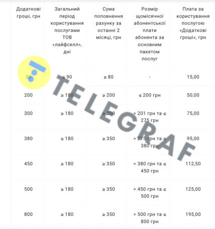 "Услугой могут воспользоваться индивидуальные и корпоративные абоненты, которые обслуживаются на условиях подписки три или более месяцев и пополнили счет на 80 грн или больше за последние 60 дней", — пишет Lifecell.