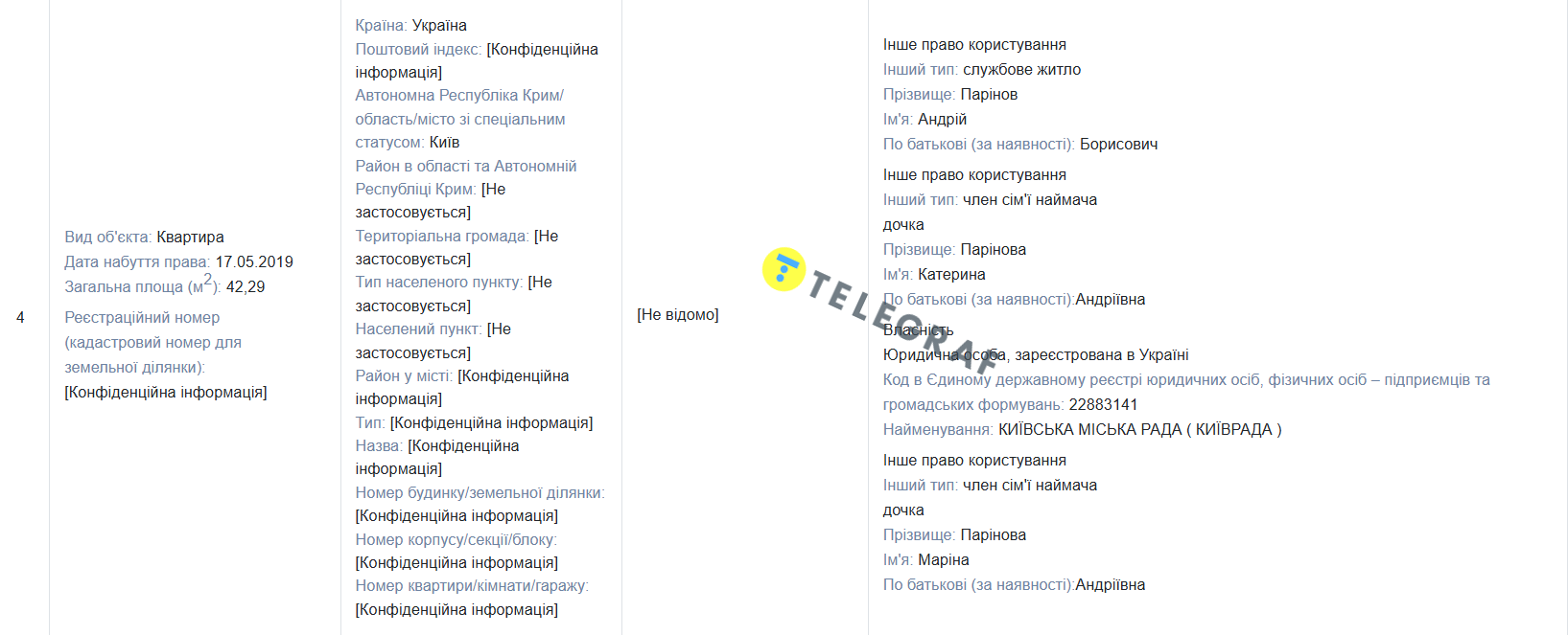 За отчетный период Паринов купил в Киеве: квартиру площадью 65 квадратов, стоимость которой, согласно документу, составляет 3 042 988 грн, вместе с нежилым помещением (предполагаем, гаражом) площадью 10,4 кв. за 140000 грн. и 10 соток земли стоимостью 1369500 грн на четверых вместе с родственниками. При этом у него уже была квартира в Киеве.