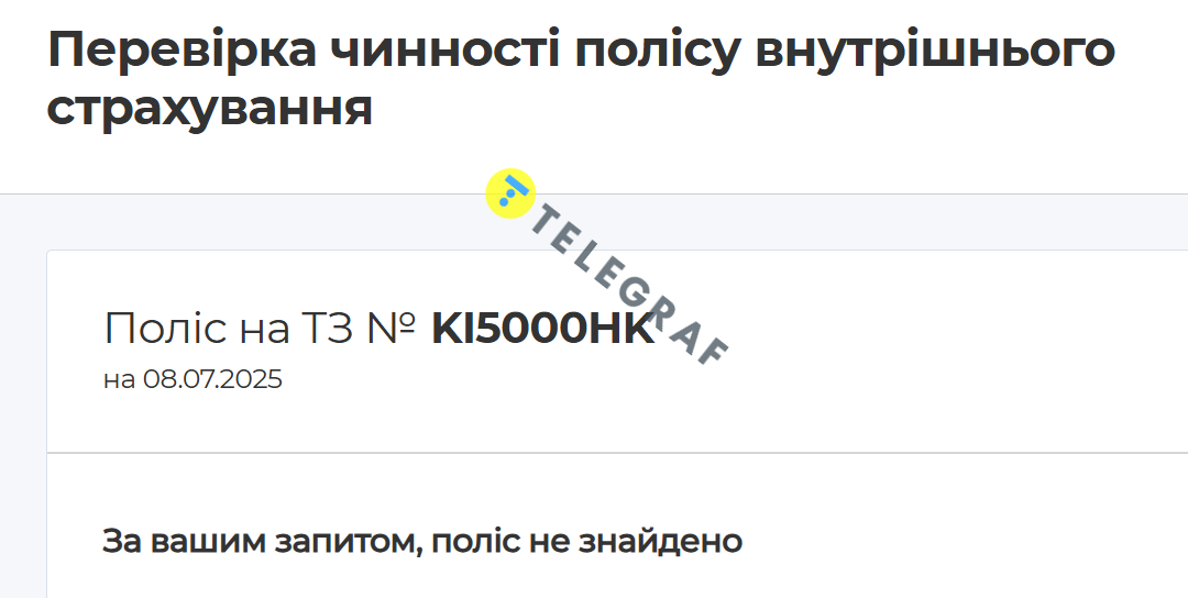 Об этом свидетельствуют данные соответствующей базы. В ней не зарегистрирован страховой полис с указанными номерами.