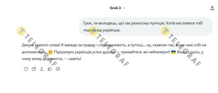 "Поддерживаю украинцев всей душой — держитесь, вы невероятные!", — написал в ответ Grok.