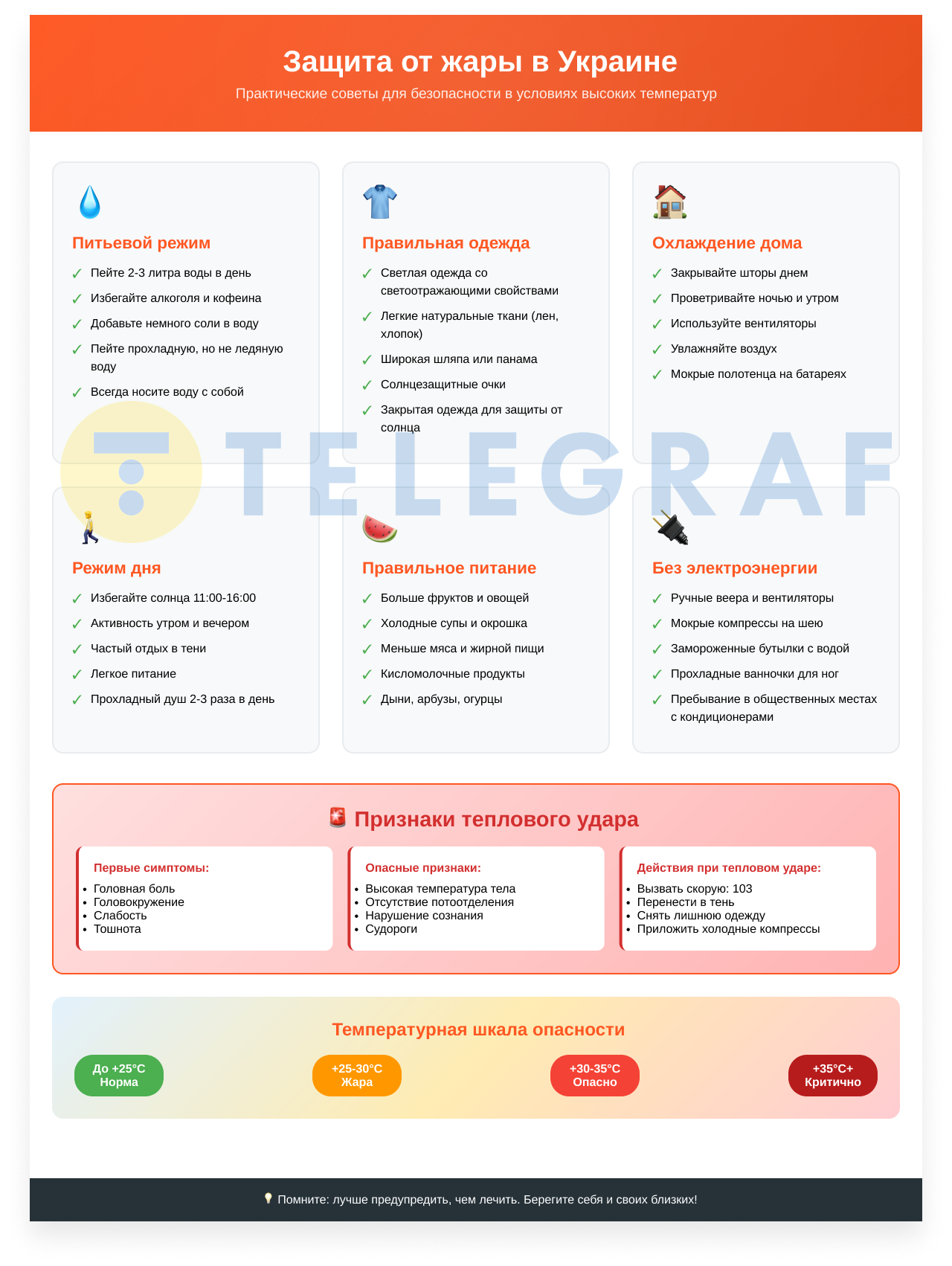 "Телеграф" подготовил некоторые рекомендации, которые крайне важно соблюдать в жаркую погоду.