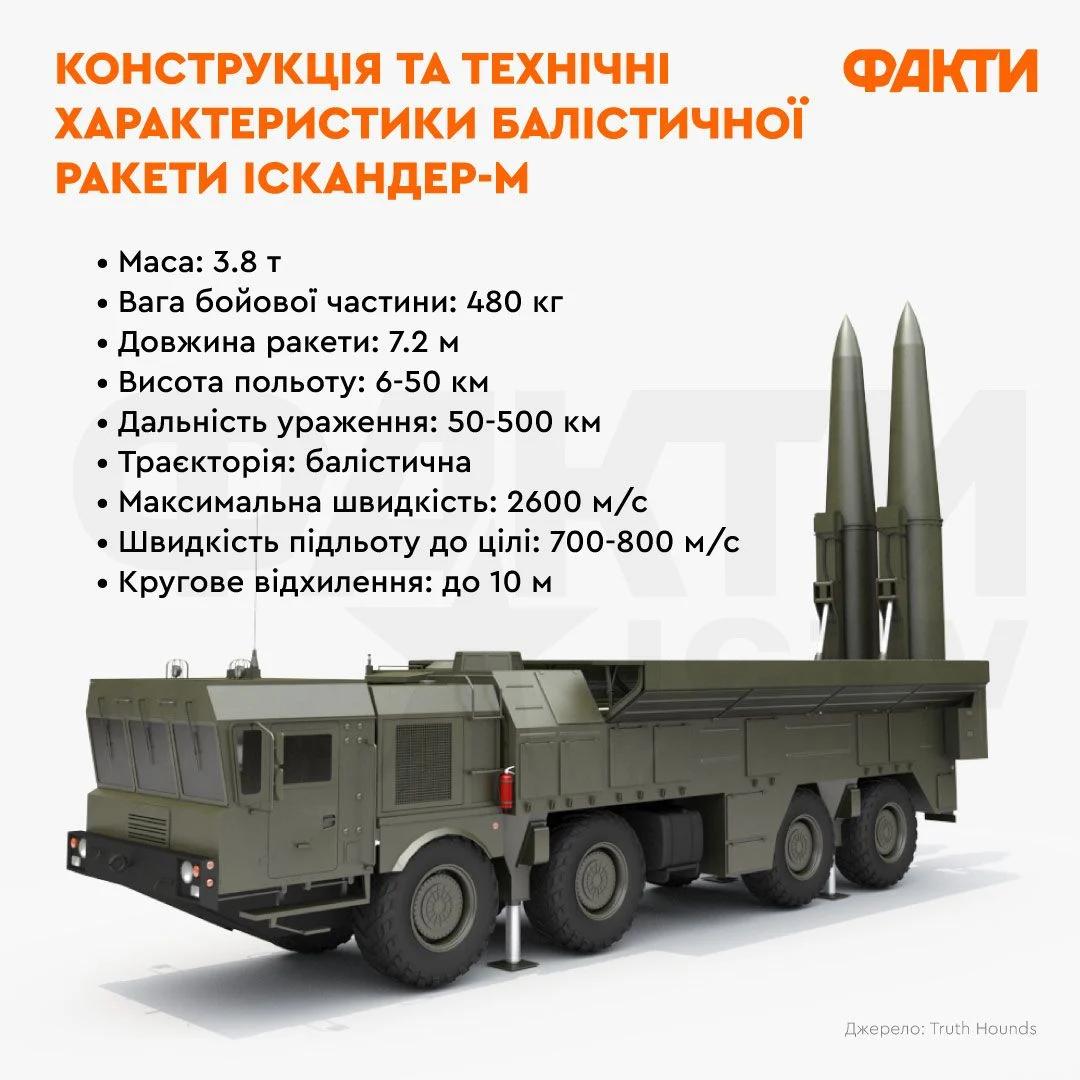 "Искандер" – это баллистическая ракета малой дальности, разработанная в России. Основное предназначение – уничтожение наземных целей, таких как командные пункты, пусковые установки ракет, аэродромы, склады боеприпасов и другие важные объекты. Сейчас оперативно-тактический комплекс "Искандер" Россия активно использует для ударов по территории Украины.