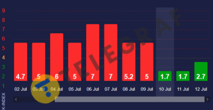 - 12 июля — К-индекс 2,7 (зеленый уровень), слабые магнитные бури