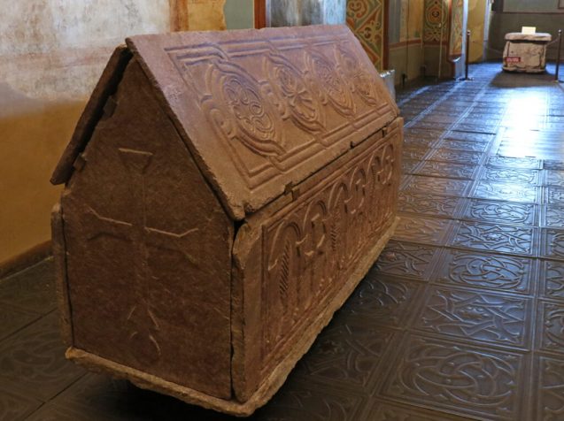 Однако после монгольского нашествия в 1240 году след могилы княгини Ольги был потерян. Ее мощи исчезли при загадочных обстоятельствах. Позднее был найден саркофаг, в котором, предположительно, находилось ее тело. Его обнаружили в Киевской Софии, но без останков. Саркофаг покрыт детализированной резьбой в византийском стиле, аналогичной той, что присутствует на мраморном саркофаге князя Ярослава Мудрого.