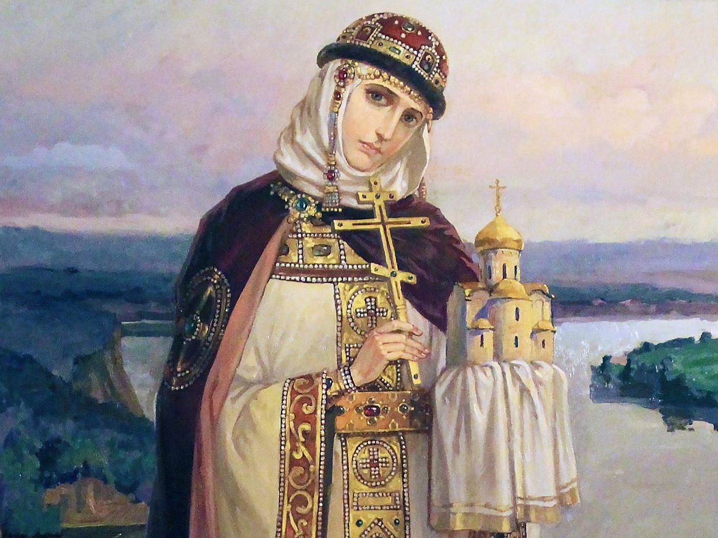 В середине 950-х годов княгиня приняла христианство, став первой из правящей династии, кто сделал такой шаг. Ольга приняла крещение в Константинополе, где, по преданию, на нее обратил внимание сам византийский император. Но Ольга оставалась до конца жизни верной своему погибшему мужу.