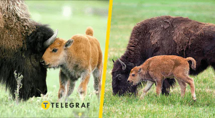 Маленькие бизончики рождаются с характерным рыжеватым мехом, который постепенно темнеет и через полгода станет темно-коричневым. Это естественный механизм маскировки, помогающий животным лучше сливаться с окружающей средой. Малыши бизона очень быстро встают на ноги и почти сразу начинают следовать за матерью — такое поведение жизненно важно для выживания в дикой природе.