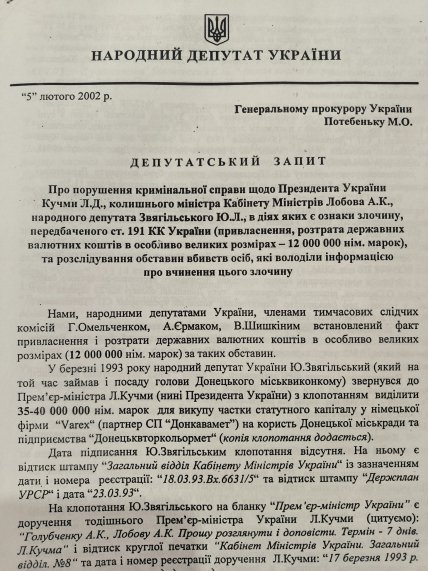 Среди ключевых фактов, как отмечал Алексей Толкачев, попытка передать информацию о миллионах марок, выведенных через механизмы связи между Звягильским, Кучмой, Кравчуком и другими влиятельными лицами. Однако с первой встречи с представителем штаба Евгения Марчука генералом Григорием Омельченко Медолиз смог передать лишь часть информации. Дальше его намерения были прерваны.