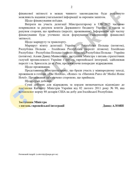 В Минстратегпроме сообщили, что расходы на участие его делегации в URC2025 частично покрывались средствами госбюджета Украины. За перелет и проживание платила принимающая сторона.