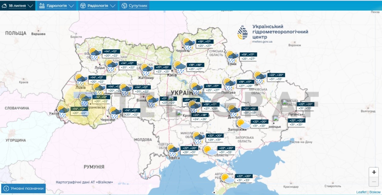 В течение 18 июля, то есть в пятницу, почти по всей Украине пройдут дожди вместе с грозами, которые прогнозируются также и 17 июля. Однако температура местами будет все равно достигать +33 градусов днем.
