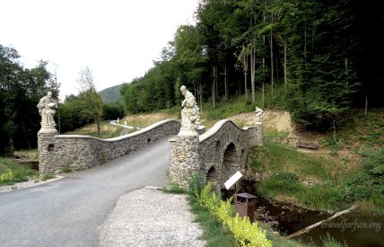 Выдающейся особенностью моста являются четыре скульптуры евангелистов — Марка, Матфея, Иоанна и Луки, которые украшают его перила. Эти фигуры не просто декоративные элементы, но и глубокие символы духовной защиты и христианского наследия края. Кресты на мосту напоминают о многовековой истории христианства в Закарпатье и органическом сочетании традиций Ветхого и Нового Завета.