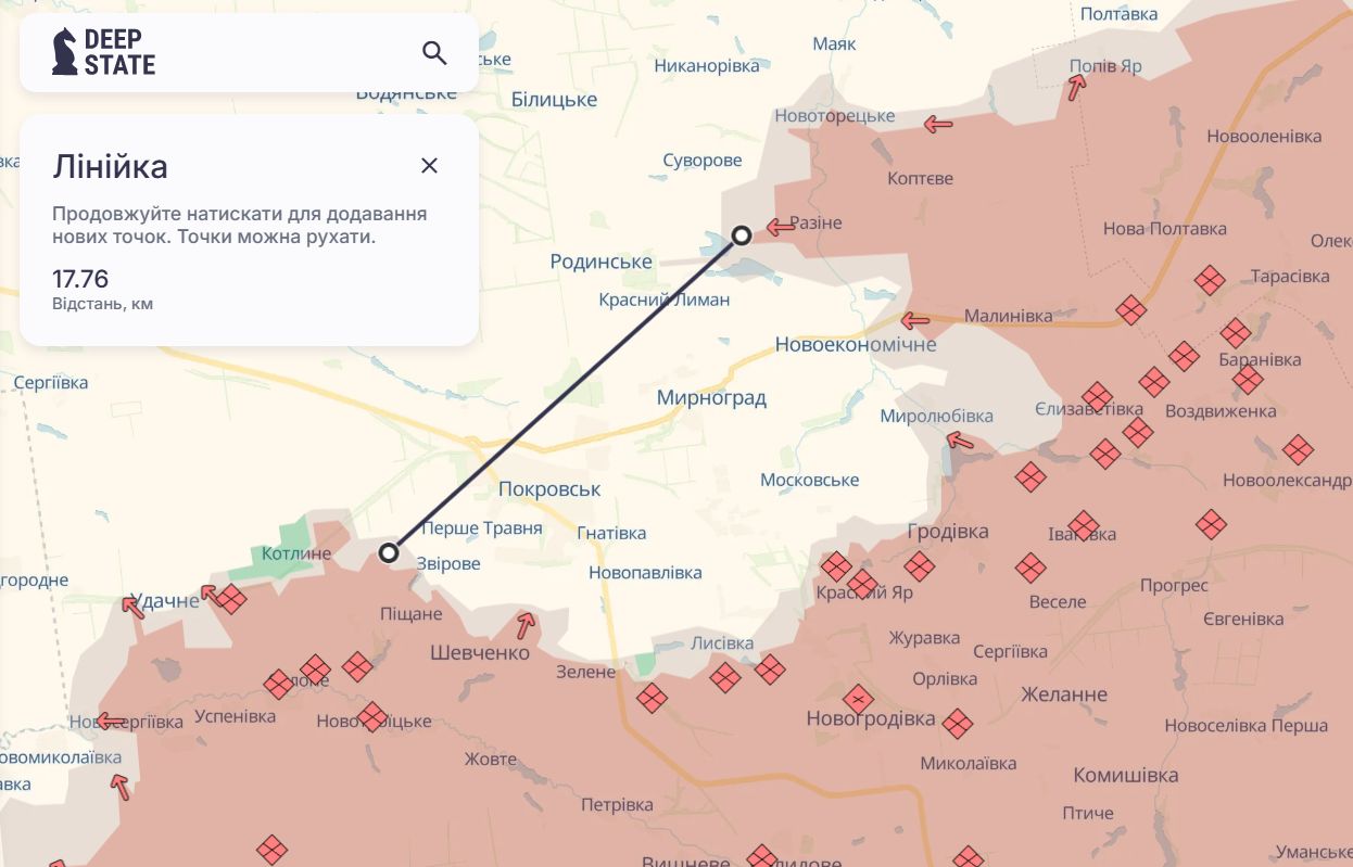 "Если она будет меньше 10 км, это будет означать, что этот котел может быть вполне реальным и вопрос о выходе из Покровска действительно станет максимально актуальным. Сейчас этого нет", — сказал эксперт.