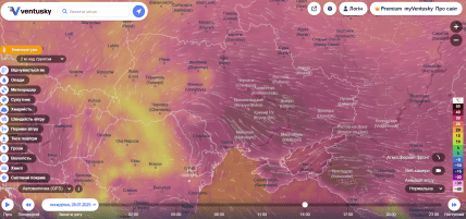"Телеграф" собрал подробный прогноз с сайта Ventusky.