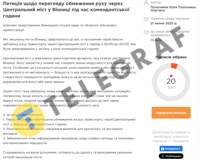 Местные жители зарегистрировали петицию с просьбой в городской совет и ОВА пересмотреть запрет: